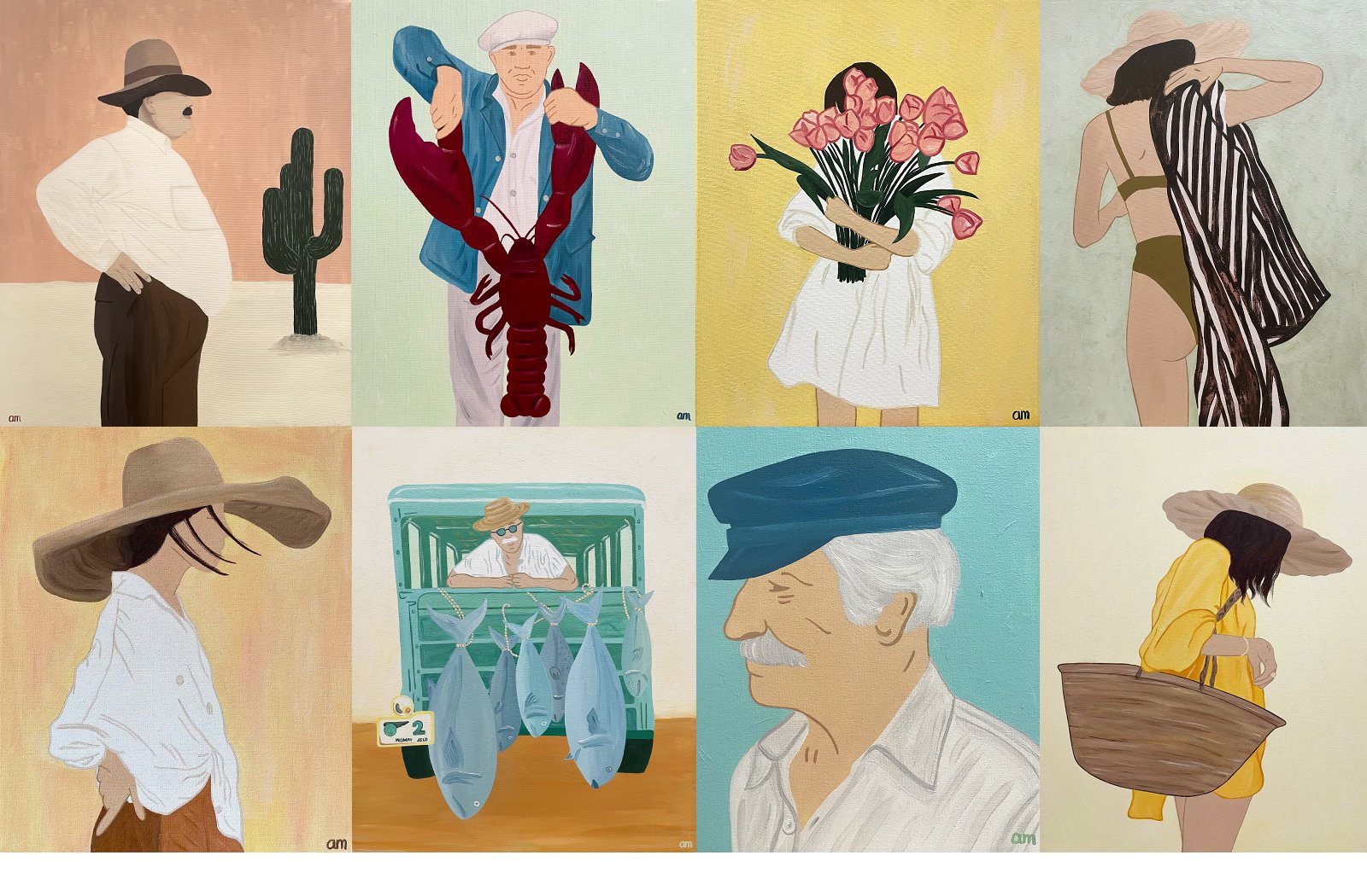Original paintings by Ainhoa Montánchez. Meet cheerful characters in everyday life activities!